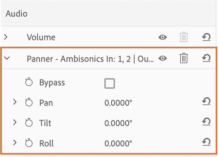 Select Panner - Ambisonics effect to the corresponding audio clip within this sequence. This effect allows you to reorient the audio sphere.