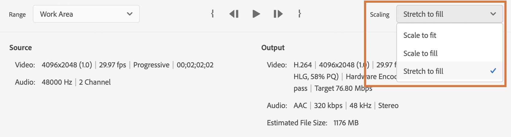 Use the Stretch to Fill option under Scaling to achieve the best results when exporting VR videos.