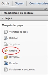 L’extraction consiste à réutiliser dans un document PDF des pages sélectionnées dans un autre fichier PDF. Les pages extraites comprennent non seulement le contenu mais aussi tous les champs de formulaire, commentaires et liens associés au contenu initial des pages.