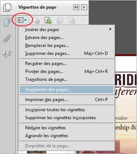 L’utilisation de la commande Numéroter des pages a uniquement une incidence sur les vignettes de page affichées dans le panneau Pages. Il est possible d’insérer manuellement des numéros de page dans un document PDF à l’aide de la fonction d’en-têtes et de pieds de page.