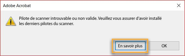 Une option En savoir plus a été ajoutée pour chaque message d’erreur lié à la numérisation. Lorsque vous cliquez sur cette option, vous accédez à une page de dépannage permettant de résoudre le problème.