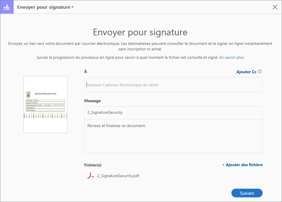 Pour en savoir plus, voir Envoi de documents PDF pour signature.
