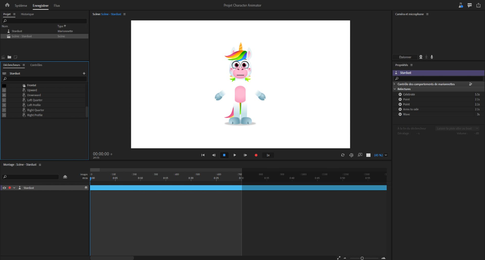 Après avoir modifié la marionnette, vous pouvez créer un jeu de scène à enregistrer. Pour créer un jeu de scène, effectuez l’une des opérations suivantes :
