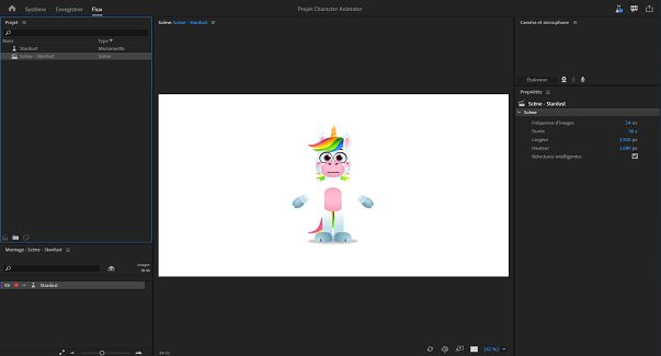 - Cliquez sur Ajouter à une nouvelle scène dans le panneau Projet.