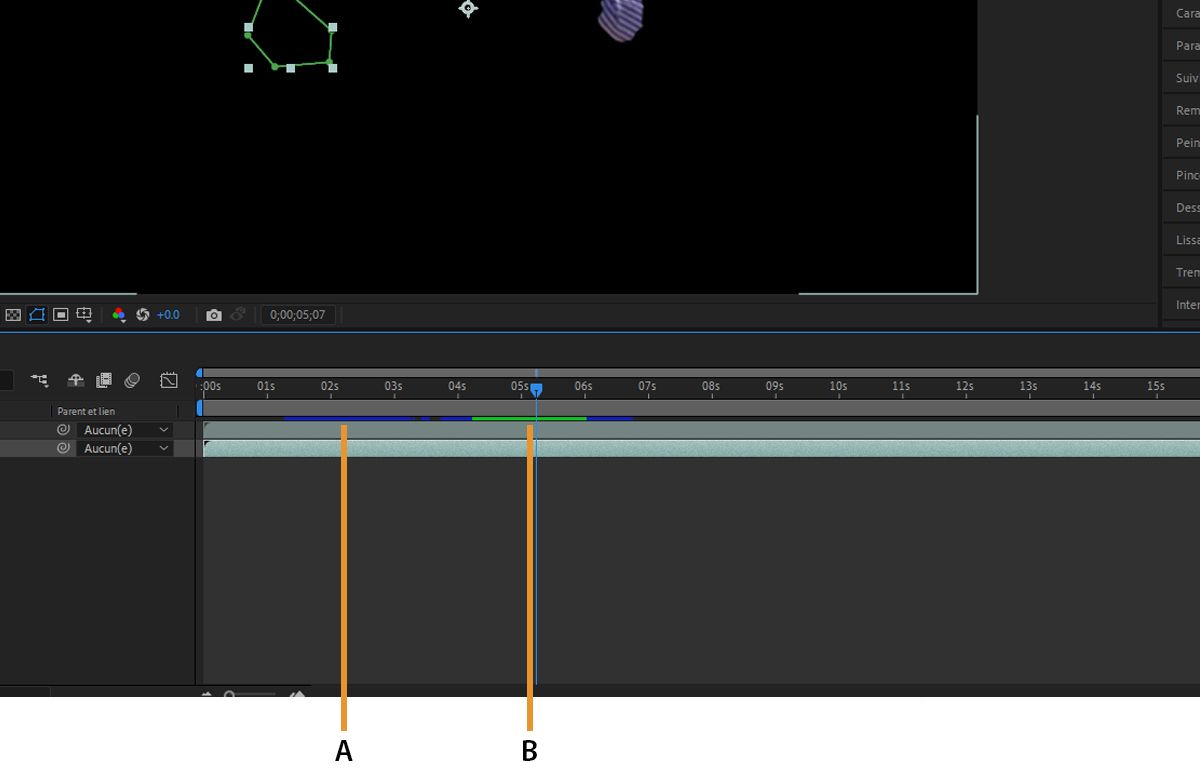 Pour créer l’équivalent d’une zone ciblée pour un seul calque, vous pouvez dessiner un masque temporaire autour de la partie du calque sur laquelle vous travaillez. Le rendu de la zone extérieure au masque ne sera pas effectué. Cela peut accélérer sensiblement le traitement d’une petite partie d’un calque de grande taille. La prudence est toutefois de mise, dans la mesure où l’absence de rendu des pixels situés à l’extérieur du masque risque de modifier considérablement l’apparence de la composition En savoir plus sur la création de masques dans After Effects.