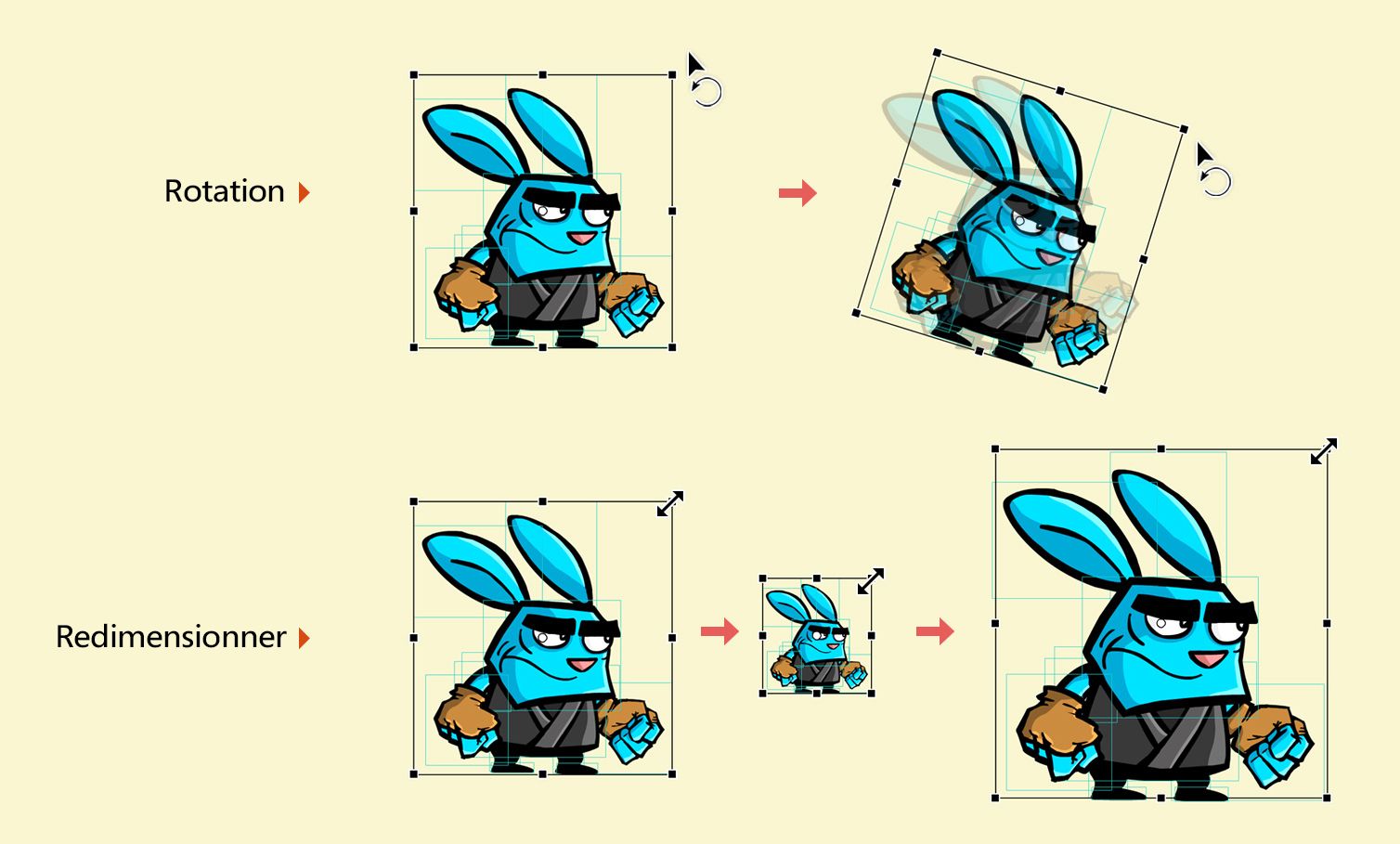 Consultez l’article intitulé Transformation et combinaison d’objets graphiques dans Animate CC pour en savoir plus sur l’utilisation de l’outil Transformation.