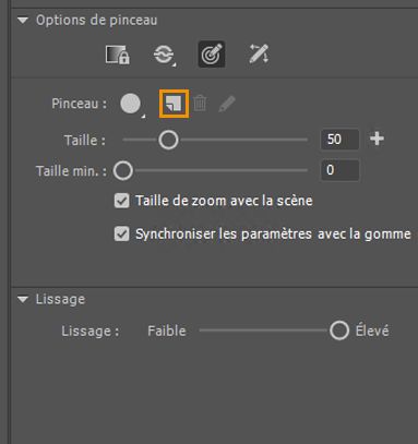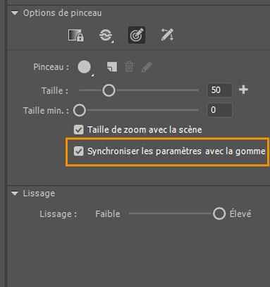 Synchronisation des paramètres des outils Pinceau et Gomme