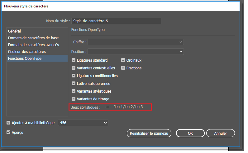 etsélectionnez les jeux stylistiques désirés dans la liste.