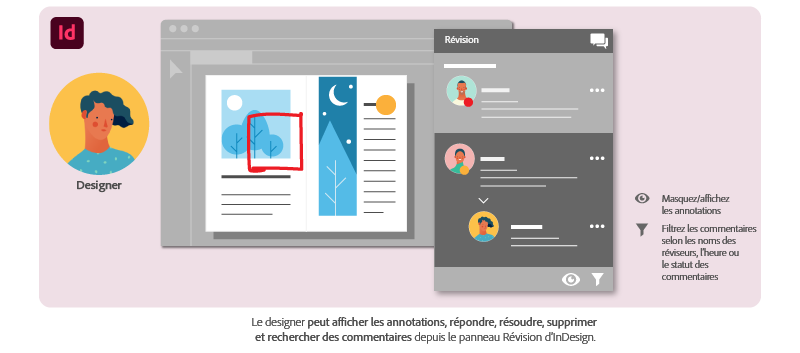Voici une référence visuelle pratique sur la gestion des commentaires des parties prenantes dans InDesign.