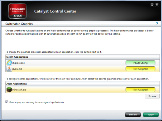 b. Cliquez sur Parcourir et sélectionnez Hautes Performances au lieu de Économie d’énergie.