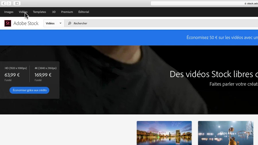 Sur stock.adobe.com, cliquez sur Vidéos dans le menu général. Sur la page de destination des vidéos, cliquez sur la collection de templates d'animation graphique pour afficher toutes les animations graphiques.