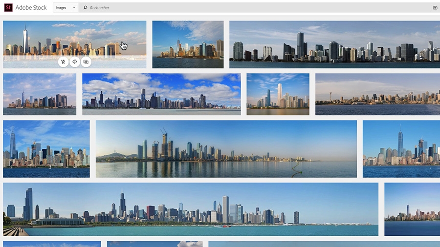 Recherchez un grand panorama urbain dans Adobe Stock avec une résolution suffisamment élevée pour prendre en charge l'agrandissement. Enregistrez l'image dans votre Bibliothèque Creative Cloud afin de pouvoir y accéder depuis XD.