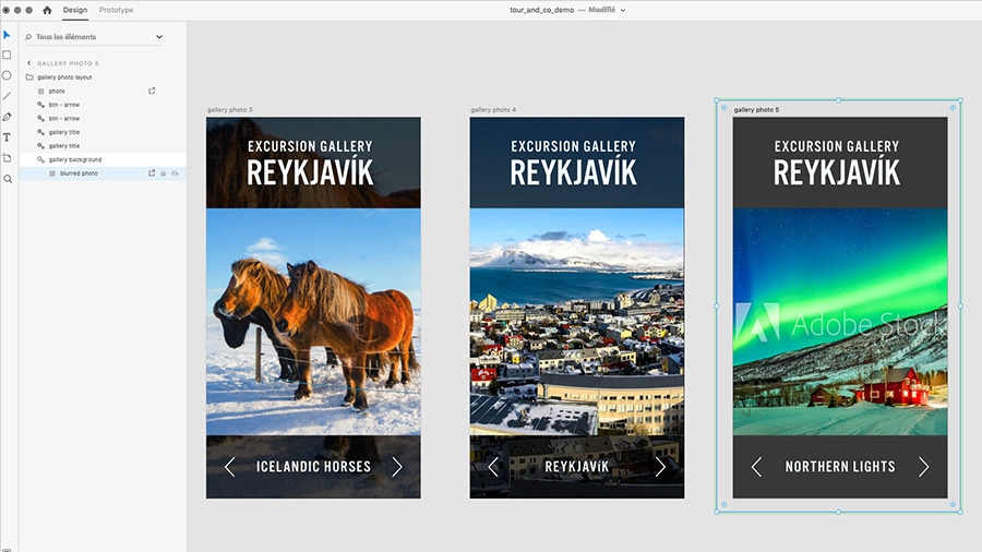 Placez l'image dans votre mise en page de galerie XD et ajoutez un titre.