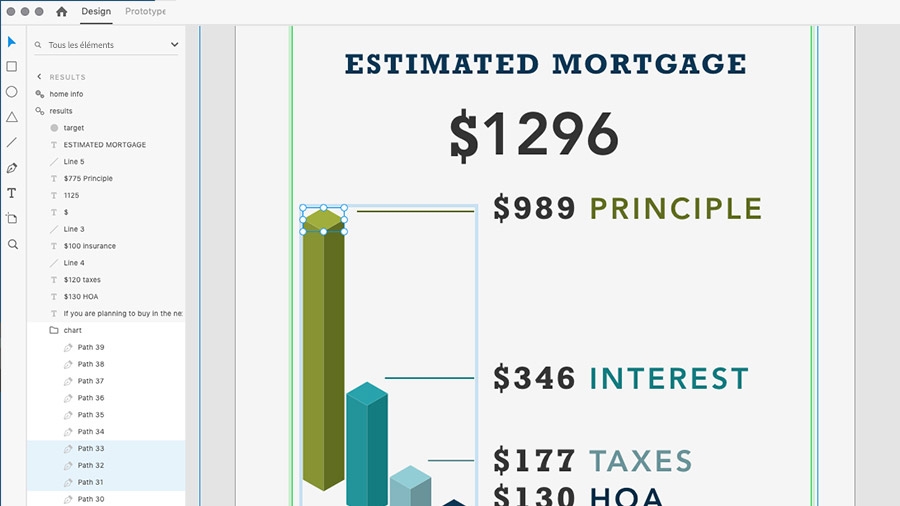Collez le diagramme dans Adobe XD, puis ajustez les couleurs et les hauteurs en fonction de votre identité visuelle et des données.
