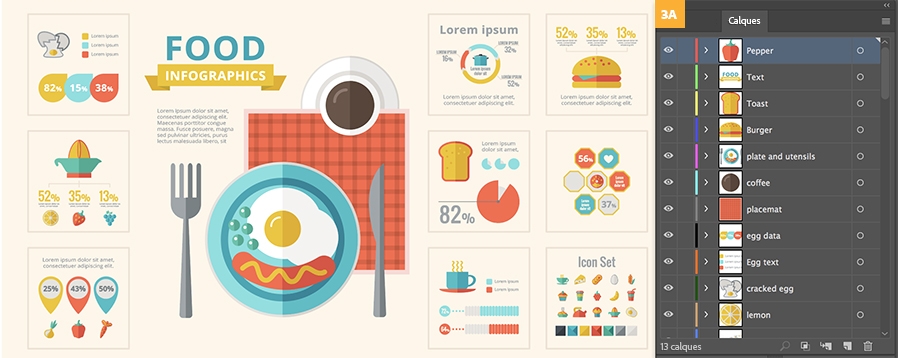- ne pas inclure d'images pixellisées (JPEG) — ce ne sont pas des vecteurs — dans vos fichiers vectoriels.