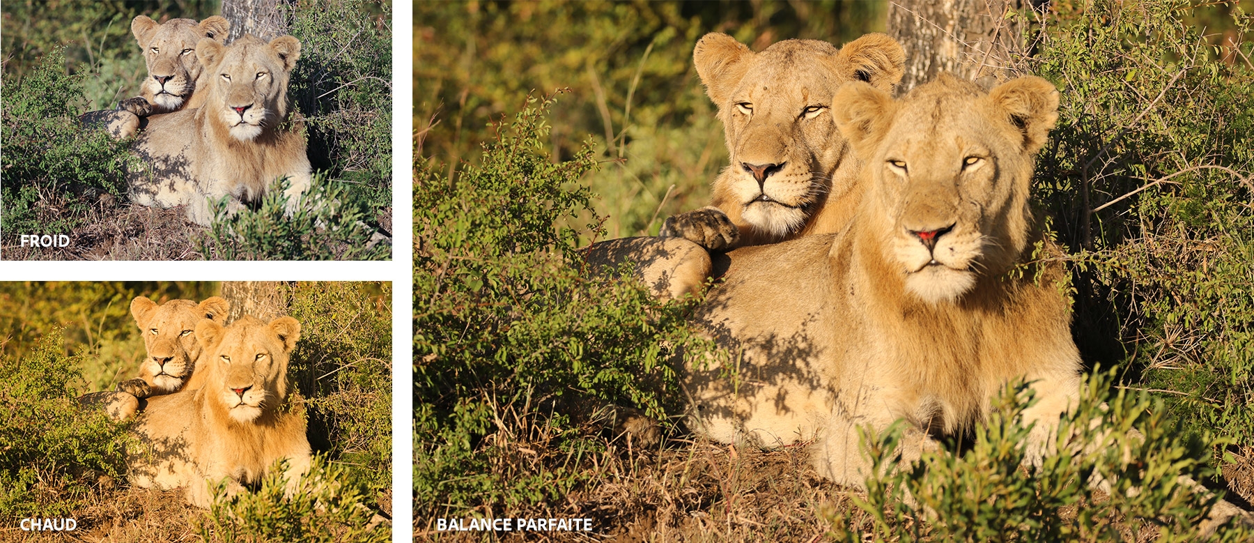 Supprimez les éventuelles dominantes de couleur pour obtenir une balance parfaite. Veillez à ce que la tonalité ne soit ni trop chaude, ni trop froide.