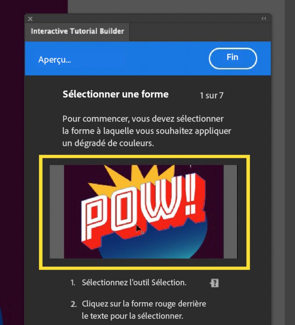 L’image de section est une représentation statique ou animée des actions clés dans une section de tutoriel.