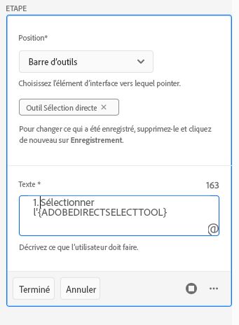 Remarque : pour plus d’informations sur le balisage dans Tutorial Builder, cliquez ici. Pour plus d’informations sur le choix des balises, rendez-vous ici.