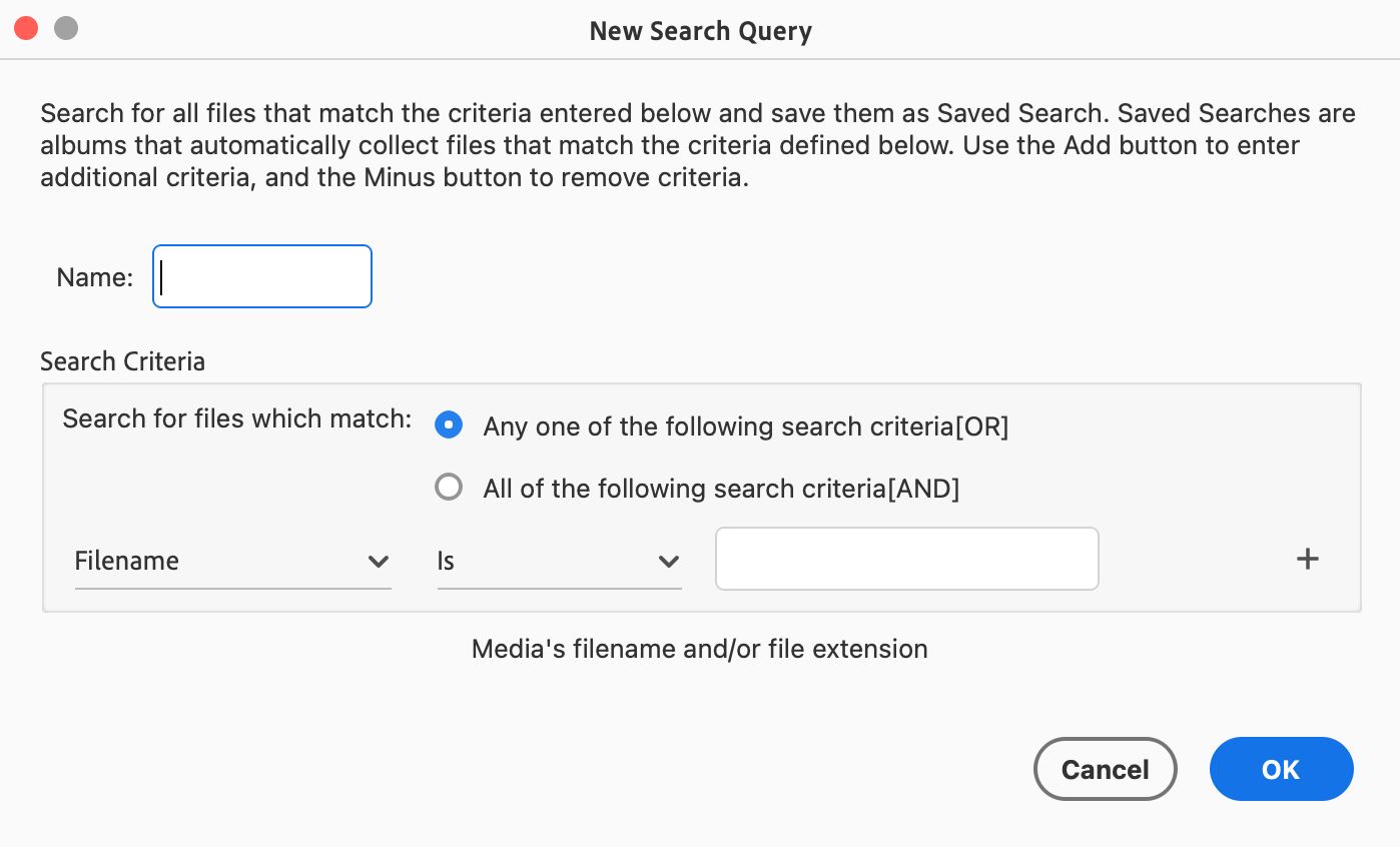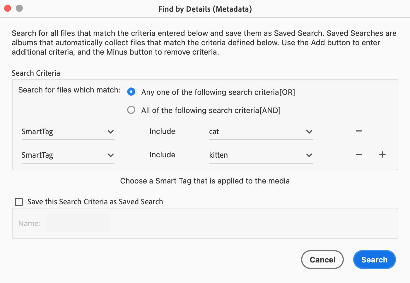 Saved Searches are albums that collect media matching specified criteria. After you create a Saved Search, any media that matches the criteria of that Saved Search appears automatically in the Saved Search results. As you add new media to the catalog, the media items matching the Saved Search criteria also appear automatically in the Saved Search results. Saved Searches keep themselves up-to-date.
