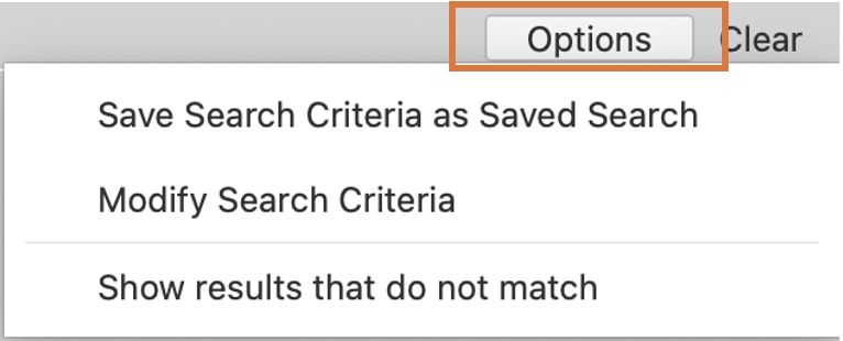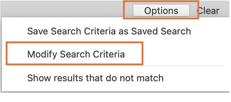 Select Options from the upper-right bar. Click Search Modify Criteria.