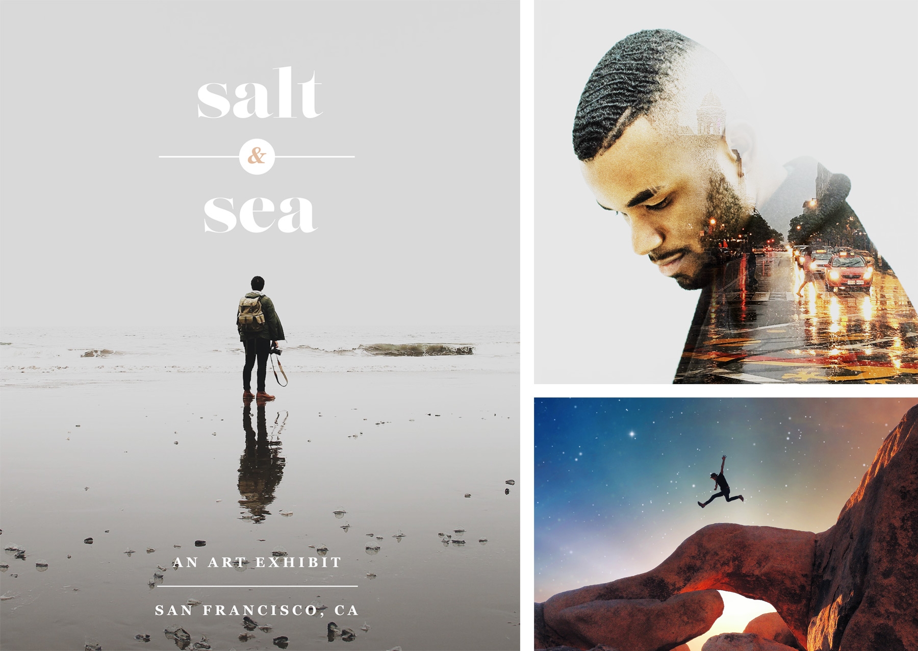 Collage of art pieces edited in Lightroom are opened in Photoshop. Updates are automatically saved to Lightroom in a new file