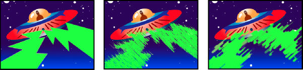 The Roughen Edges effect roughs up the edges of a clip’s alpha channel by using calculations. It gives rasterized text or graphics a naturally rough look, like that of eroded metal or typewriter text.
