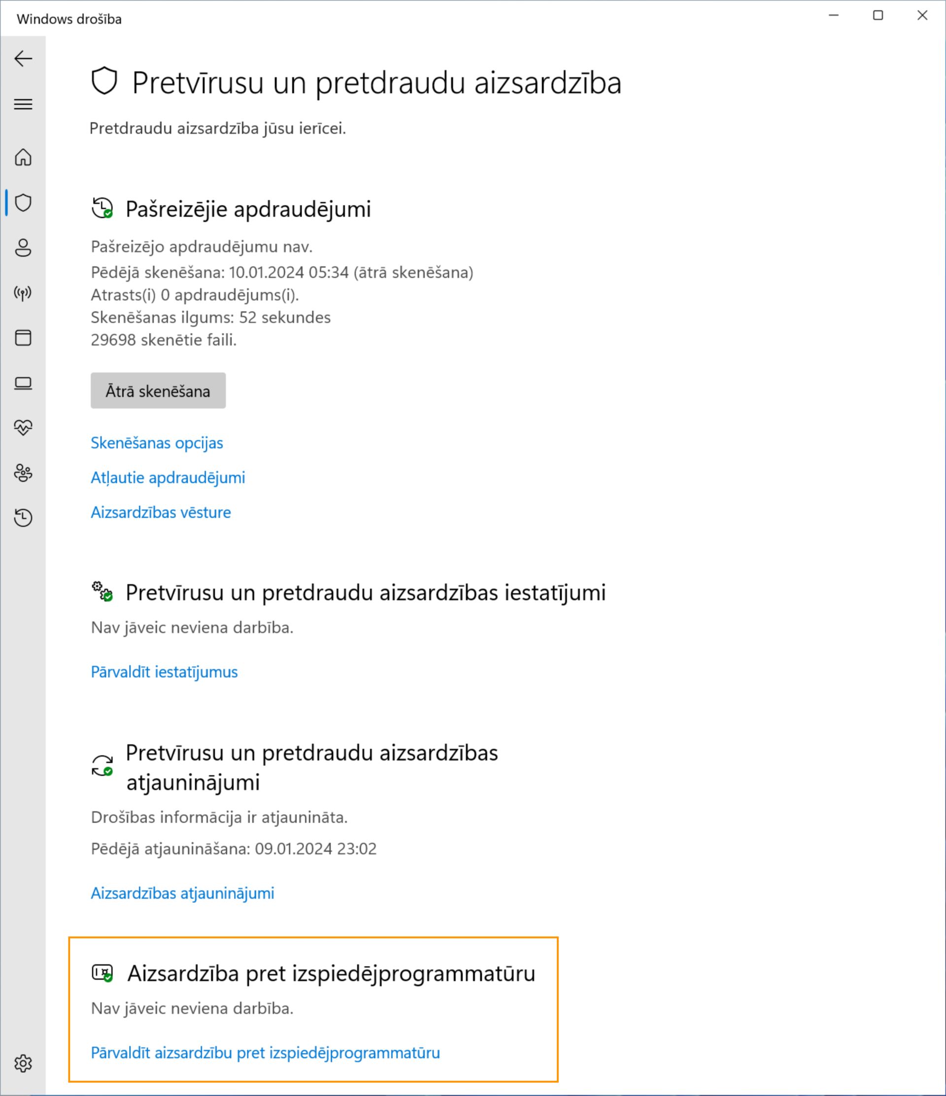 Pretvīrusu un pretdraudu aizsardzība iestatījumos izvēlieties Aizsardzība pret izspiedējprogrammatūru.