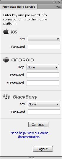 لا يمكنك استخدام PhoneGap Build وDreamweaver بدون حساب خدمة PhoneGap Build. الحسابات مجانية وسهلة الاستخدام. لإنشاء واحدًا، تفضل بزيارة PhoneGap Build website.