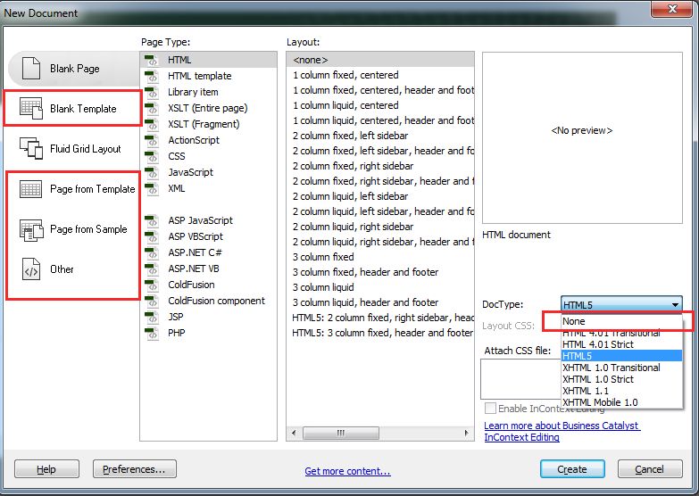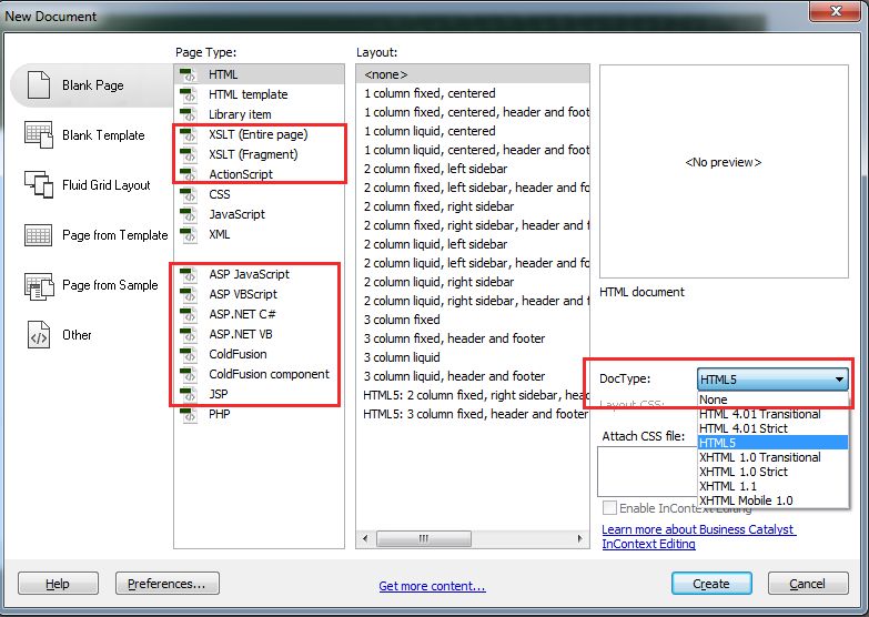 - خيارات Layout: جميعها باستثناء تخطيطات HTML5
