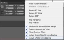 قم بتحديد كائن أو أكثر، واعرض لوحة Transform (Window > Object & Layout > Transform).