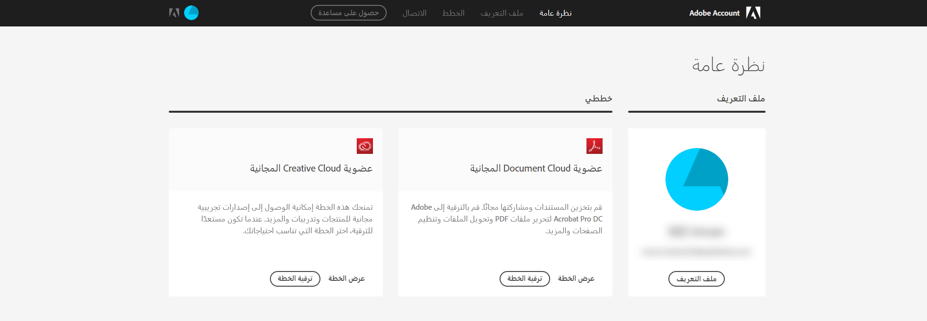 هل تريد الوصول إلى حساب Adobe الخاص بك؟ يمنحك حساب Adobe معلومات حول اشتراكك والتطبيقات المتوفرة ومعلومات السداد والفوترة وغير ذلك الكثير.