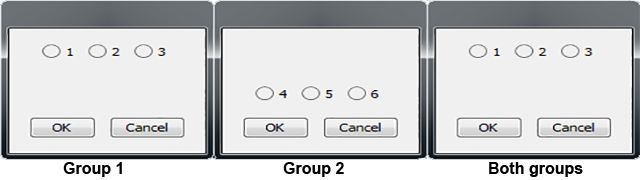 على سبيل المثال، إذا كان لدينا مجموعتان تم ترتيبهما واحدة فوق الأخرى مع عناصر واجهة مستخدم في كل مجموعة بحيث لا تتداخل عناصر الواجهة من إحدى المجموعتين مع عناصر الواجهة في المجموعة الأخرى، فكل عناصر واجهة المستخدم ستكون مرئية في طريقة تصميم المادة اللدنة.