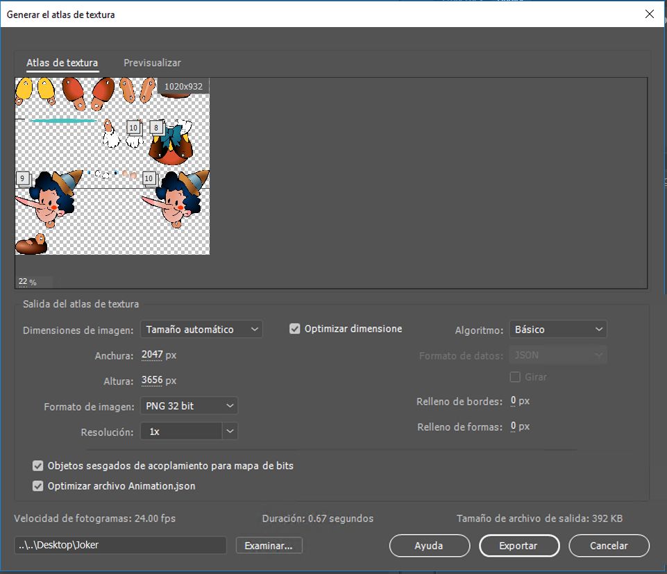 Para generar el atlas de texturas de su animación, realice los pasos siguientes: