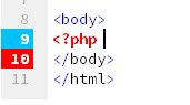Los números de línea en los que está presente el punto de inserción se resaltan en la vista Código, Código en vivo, vista Diseño, Vista en vivo y el inspector de código. Los números de línea también se resaltan en el caso de que existan errores de sintaxis.