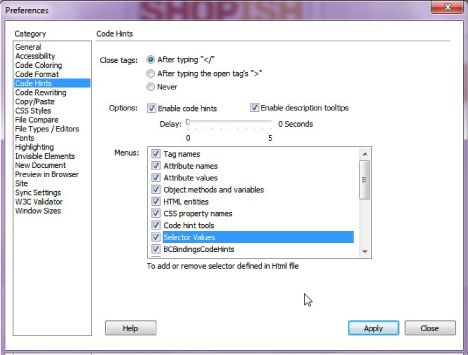 Dreamweaver proporciona sugerencias para el código al escribir . o # en un archivo CSS relacionado o en etiquetas de estilo en línea del archivo HTML principal.