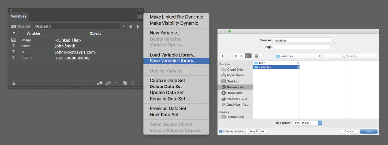 Seleccione Todos los objetos enlazados en el menú del panel Variables para seleccionar todos los objetos dinámicos.