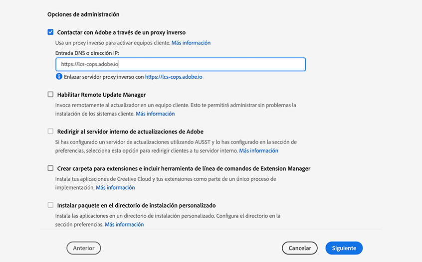 Nota: Para habilitar la conexión con el servidor de Adobe, debe incluir en la lista de permitidos la siguiente URL a través de https: