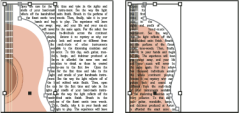 El texto apilado por encima del objeto de ceñido no resulta afectado por el ceñido de texto. La posición de las capas en el panel Capas y el orden de apilado de los objetos de una capa determinan el orden de apilado.