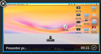 Para terminar la grabación, pulse la tecla Alt + Comando + X o haga clic con el botón derecho del ratón en el icono de Adobe Presenter Video Express en el menú superior y haga clic en Finalizar grabación.