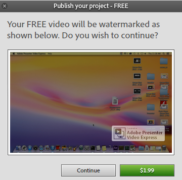 Seleccione Continuar para publicar el vídeo con la marca de agua o seleccione la opción de $xxx.