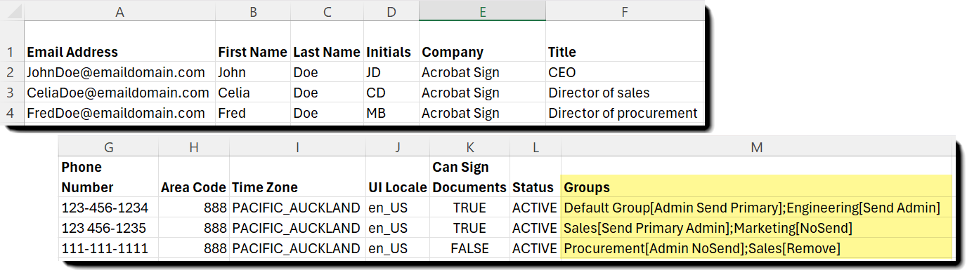 - FredDoe@emaildomain.com también se ha configurado con dos Definiciones de grupo: