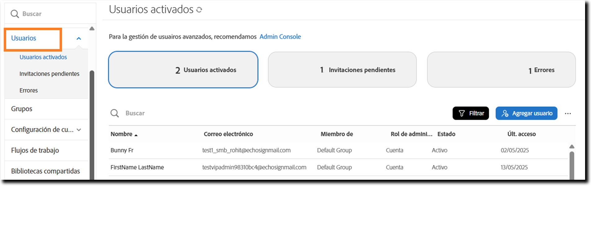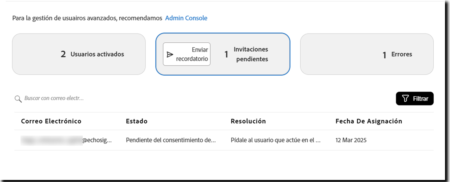 Los administradores deben revisar esta lista para decidir si el usuario aún necesita tener acceso a Acrobat Sign: