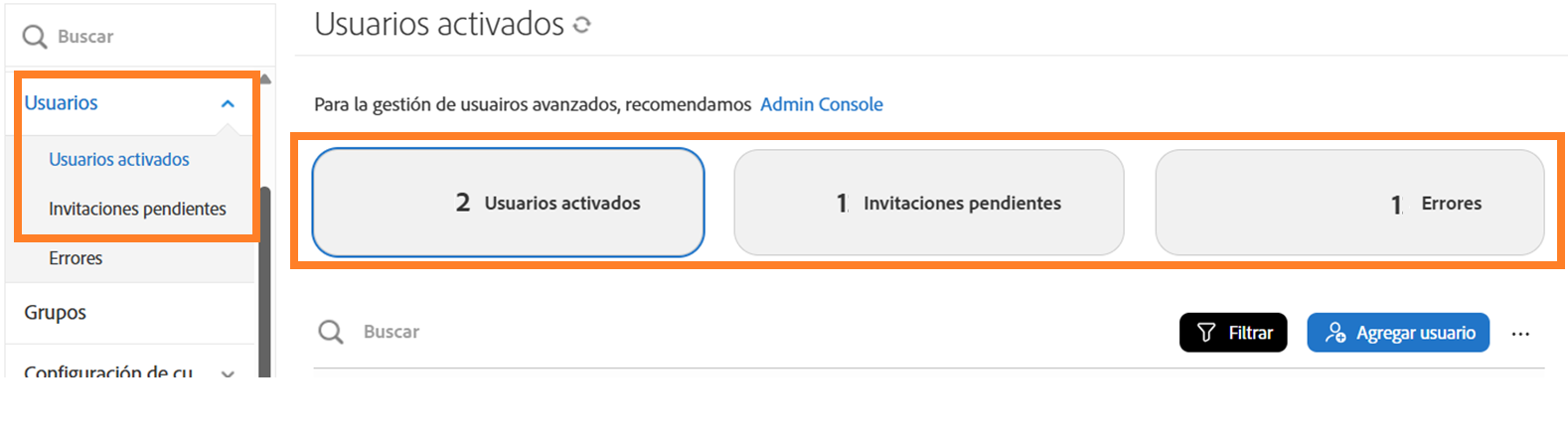 - Información general sobre Admin Console