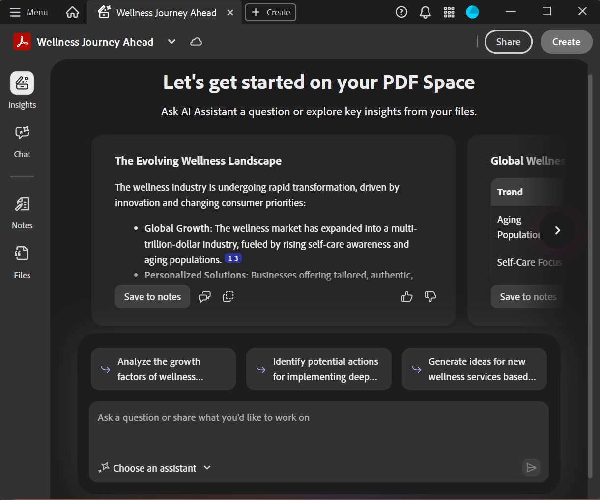 Explore how Acrobat PDF Spaces helps you organize documents, get insights, and collaborate with an AI-powered knowledge hub.