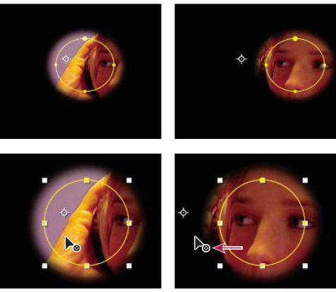 You can adjust the area that is visible through a mask by either moving the mask in the Layer or Composition panel or panning (moving) the layer behind the mask in the Composition panel. When you move a mask, the Position values of the masked layer remain constant, and the mask moves in relation to other objects in the Composition panel.