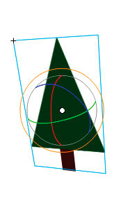 . A 3D rotation control appears on top of selected objects on the Stage. The X control is red, the Y control is green, and the Z control is blue. Use the orange free rotate control to rotate around the X and Y axes at the same time.