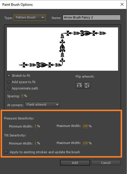 3. Click Add to add a new brush with the selected Pressure and Tilt Sensitivity settings.