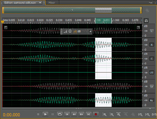 By default, Adobe Audition applies selections and edits to all channels of a stereo or surround waveform. However, you can easily select and edit specific channels.