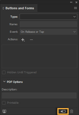 Choose Window > Interactive > Buttons and Forms to display the Buttons and Forms panel.