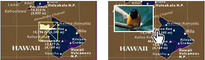 In some cases, you may want the button area (called a “hot spot” or “hot link”) to be invisible until the mouse pointer hovers over it. For example, when you move a pointer over a button on a map, an image could be displayed that represents a region, and the image could disappear when the pointer moves away from the region.